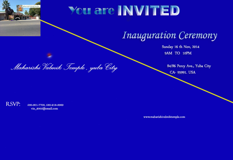 Maharishi Valmik Temple, 84/86 Percy Ave. Yuba City, CA-95991